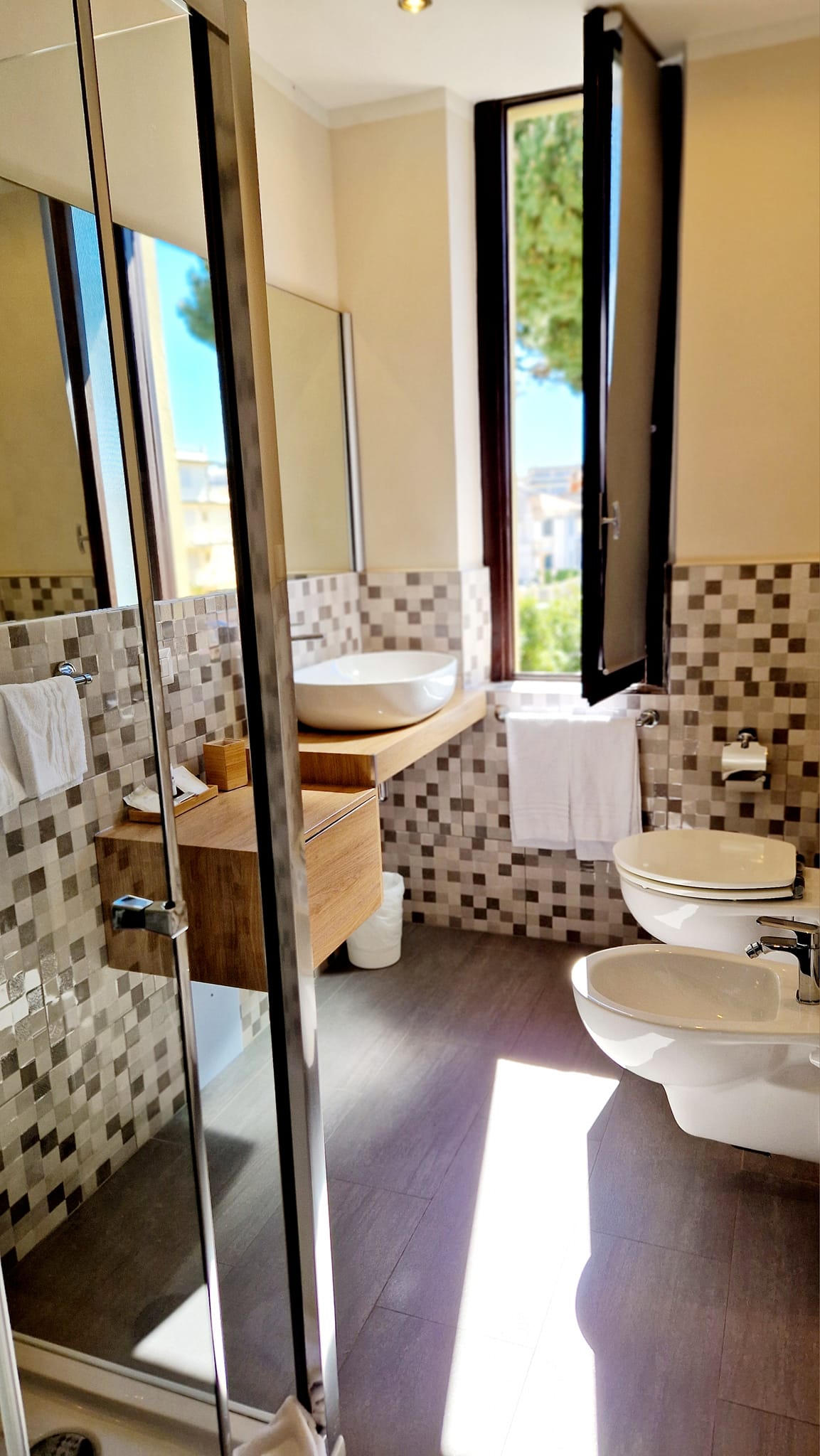Tutte le camere dell'Hotel Giardino presentano una vista rilassante, aria condizionata, cassaforte, una TV LCD, un minibar e un bagno privato con asciugacapelli e set di cortesia. Alcune sistemazioni includono anche un balcone.